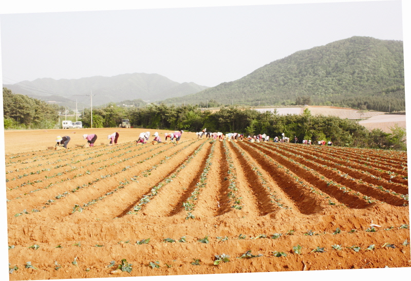 지난 11일 마산면 연구리 강변농장 이석치랑(72) 대표의 3000여평 붉은 황토밭에서는 호박고구마순 놓기가 한창이었다. 마산, 산이, 영암 등지에서 60만평에 이른 고구마 농사를 짓고 있는 이 대표는 워낙 생산 물량이 많아 가락동농수산물 시장의 고구마 가격을 쥐락펴락할 정도로 현대판 허생으로 일컬어지고 있다.
