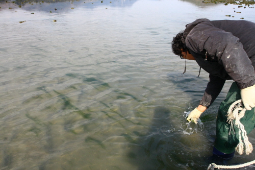 청정갯벌에서 자라는 겨울철 별미 감태, 북일면과 북평면 일대에서 감태 채취가 한창이다.
