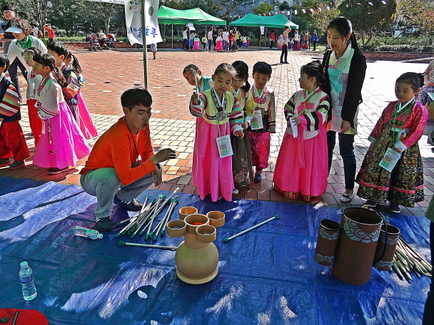 지난 6일 해남공원에서 열린 해오름유치원의 ‘2014 해오름 어울림 한마당’에 참여한 어린이들이 고운 한복을 입고 투호놀이를 즐기고 있다. 어울림마당은 유치원 원아와 학부모가 함께 참여했고 투호놀이, 비석치기, 제기차기, 윷놀이등의 민속놀이로 진행됐다.