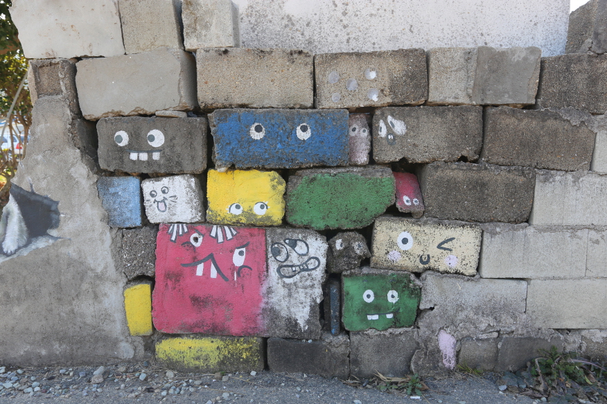 때로는 과감하게 담장전체를 감싸고 때로는 수줍게 한구석에 자리한 벽화들은 하나 같이 위트가 넘치고 생동감이 있다.