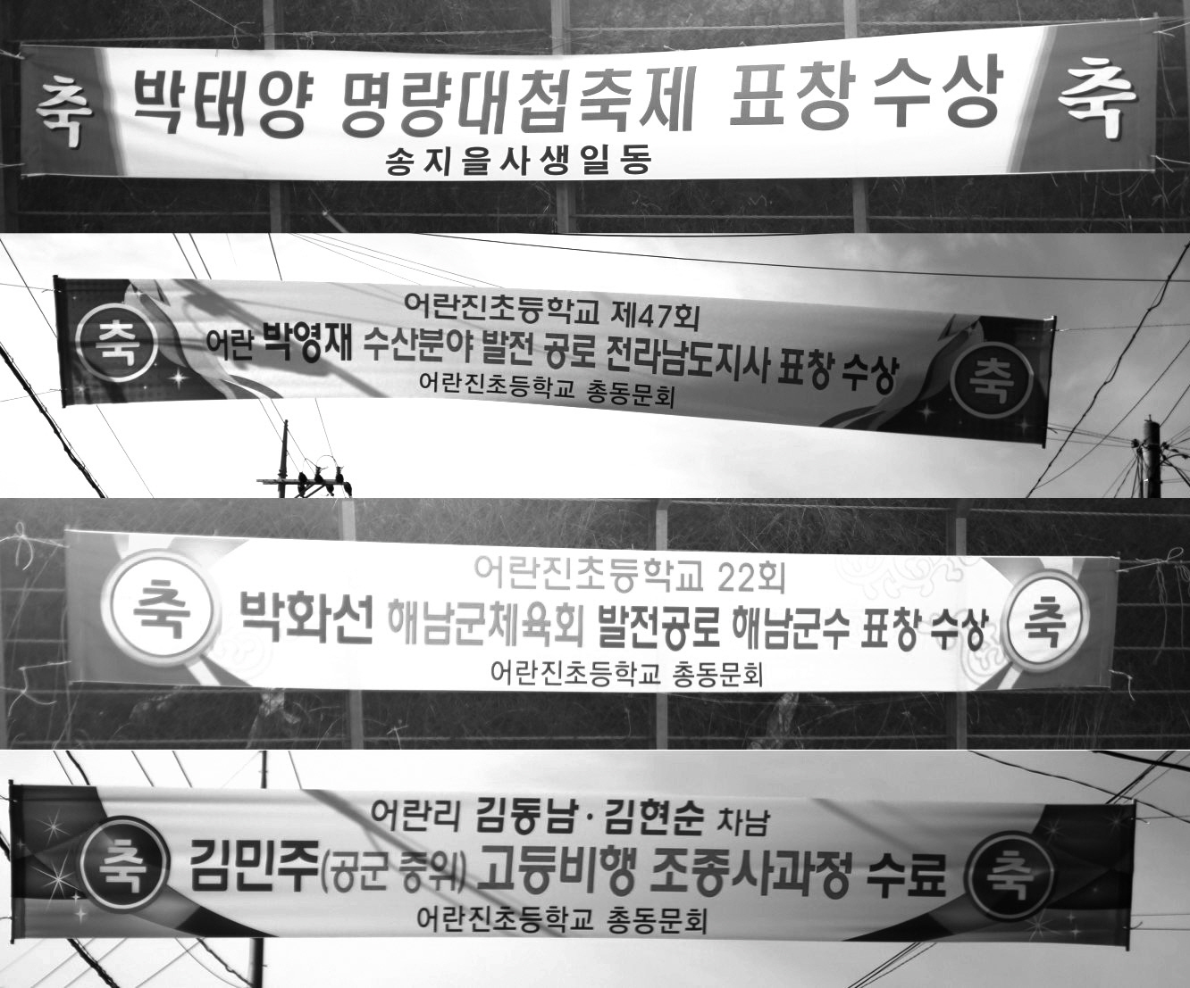 송지 어란마을 입구는 줄줄이 내걸린 현수막이 언제나 길손을 맞는다. 마을로 들어가는 입구도 기다랗지만 어란마을은 항상 현수막으로 마을을 자랑하고 또 홍보한다.