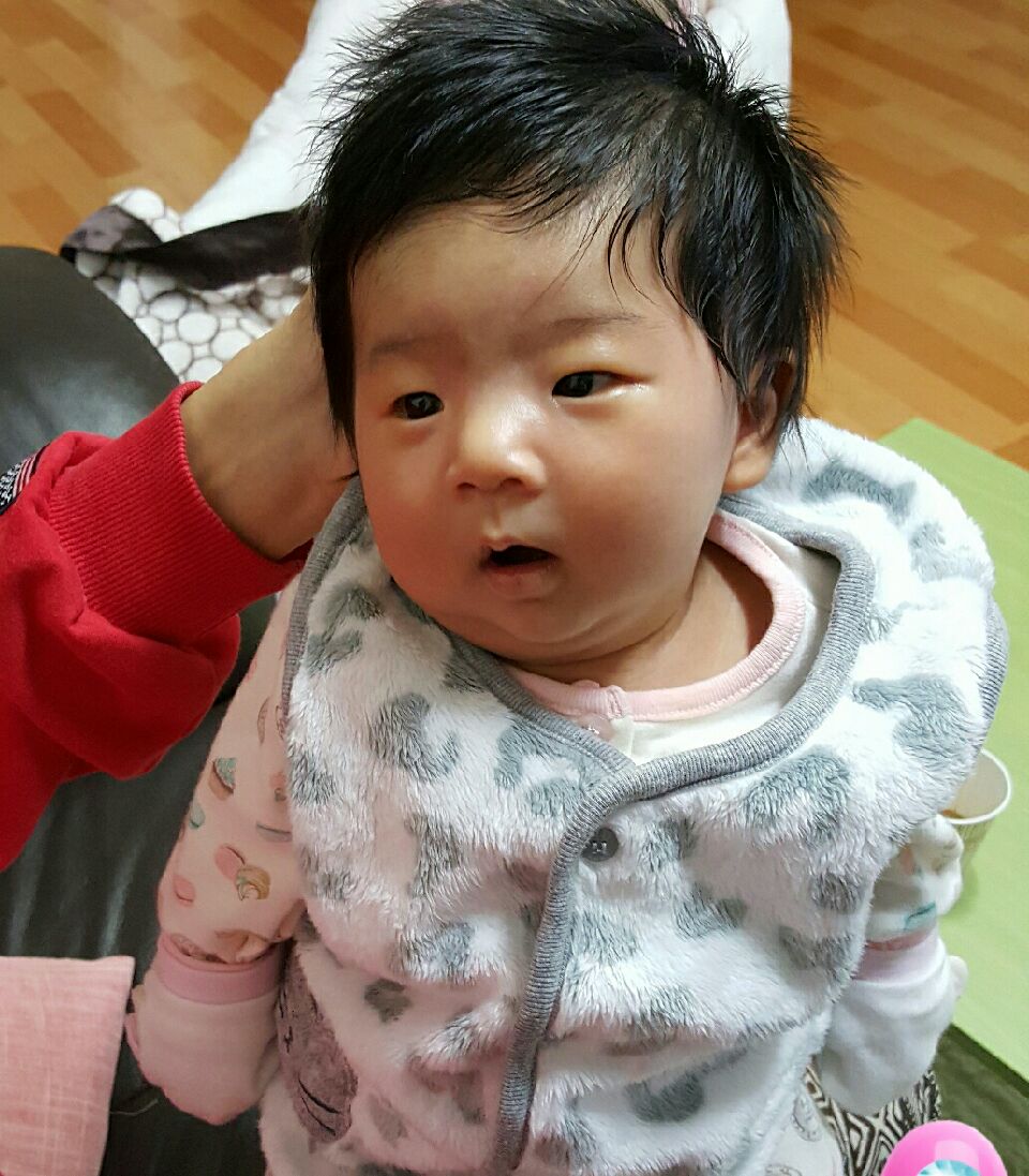 산이면 덕송리 주후준(36)․박수영(33) 씨의 첫째 딸 아정이가 10월5일 태어났어요.