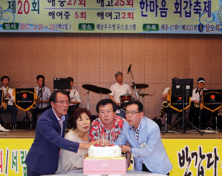 해남중학교 27회‧해남고등학교 25회 졸업생들과 해남여중 5회‧해남여고 2회 졸업생들의 회갑기념 한마음 회갑축제가 지난 20~21일 양일간 우수영 유스호스텔에서 열렸다.