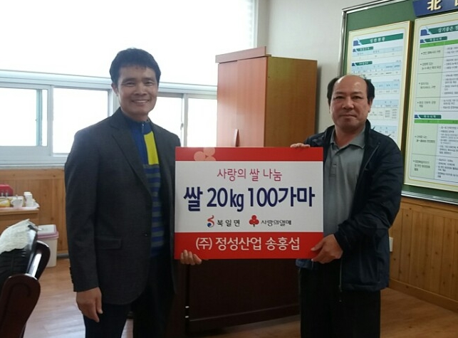 북일면 정성산업 송홍섭 대표는 지난 24일 북일면사무소를 방문해 면내 이웃에게 전달해 달라며 사랑의 쌀 20kg 100포를 기탁했다.