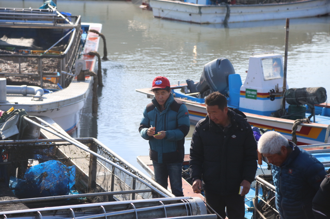지난 13일 송지면 학가리 항구, 제법 쌀쌀한 날씨인데 물김 위판장엔 많은 어선들이 몰려와 물김 주인을 기다리고 있다. 오전 11시 정각 위판이 시작되기 전 송영훈 씨는 분주하게 누군가와 통화를 한다. 김공장을 운영하는 사장들에게서 온 문의전화다. 물김 구입은 중매인을 통해 이뤄지기에 김공장과 중매인과의 신뢰는 중요하다.