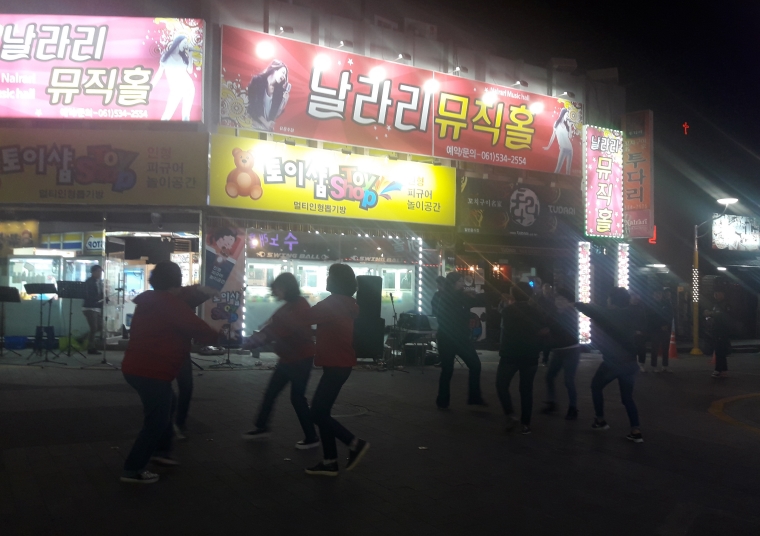 이들은 지난 16일 농협해남군지부 뒤 녹색디자인 거리에 한복판에서 강강술래를 췄다. 관객들은 뛰어보세 뛰어보세 강강술래 음원을 따라 부르고 지나가는 행인들도 우리의 정서에 녹아있는 강강술래를 지켜봤다.