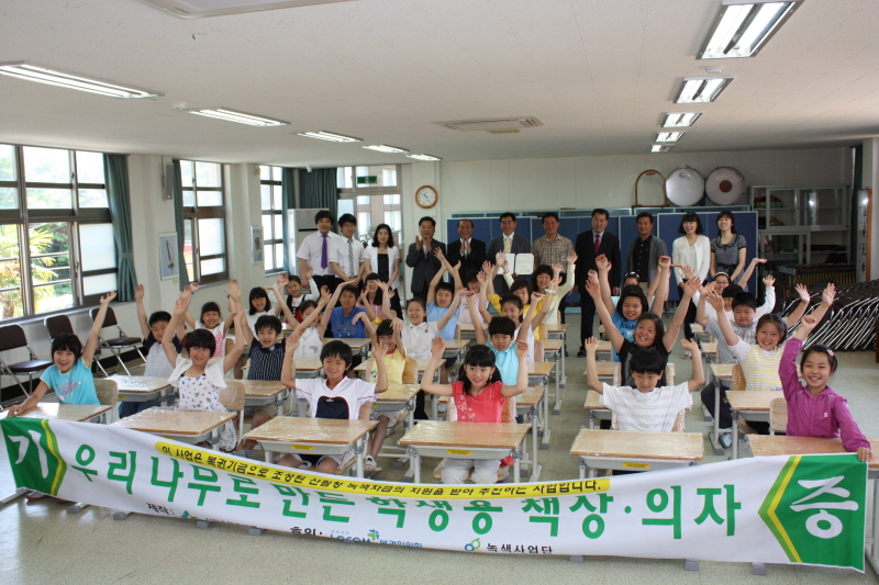 산림조합중앙회는 앞으로도 국산목재로 만든 책상과 의자를 교육환경이 어려운 전국 초등학교와 지역아동센터에 확대 보급할 것이라고 말했다.
