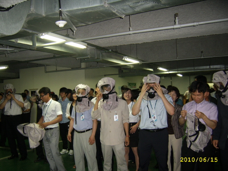또한 해남군청에서는 전 직원을 대상으로 대피훈련과 화생방 오염지역 제독훈련, 방독면 착용 요령 교육을 실시했다.