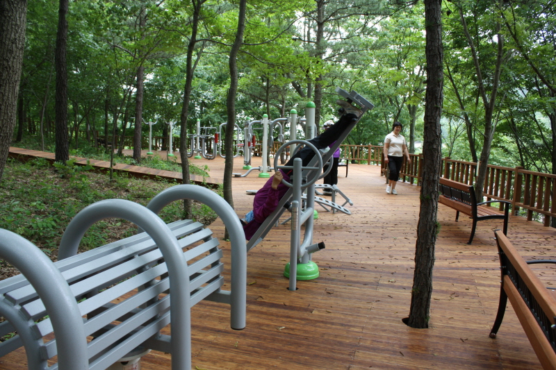 금강골 저수지변 숲속에 새로 둥지를 튼 체육공원에는 윗몸일으키기, 허리돌리기 등 10여 가지 운동기구와 음수대가 설치돼 있다. 그러나 주변을 조망하면서 사색에 잠기고, 책도 보면서 여가를 즐겼던 기존 시설에 비해 운동기구만 들어선 현재의 체육공원은 여러 면에서 아쉬움을 주고 있다.
