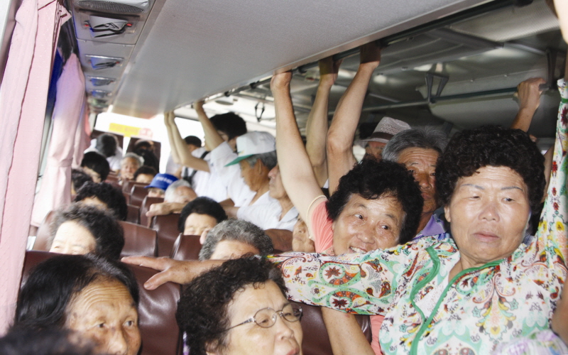 만원버스엔 누가 탔을까, 80여 명 중 할머니가 30~40명, 학생 30명, 할아버지 10여 명 남짓.