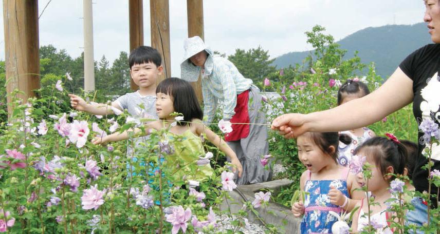 무궁화 46종이 활짝 피어 있는 무궁화동산은 지역민들의 발길을 붙잡고 있는데 현재 90%의 개화율을 보이고 있고, 이번 주말에 절정기에 이를 전망이다.
