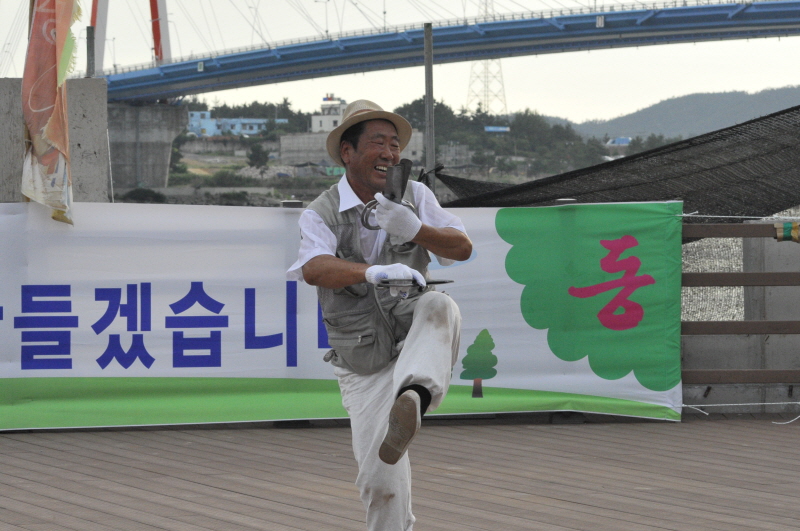 22년째 금강곡을 오르며 엿가위춤을 추는 용 씨는 엿가위 등산맨으로 통한다. 그의 등산 조끼 주머니엔 언제나 카세트와 엿장수들이 쓰는 엿가위가 들어있다. 그러나 엿은 보이지 않는다. 도대체 엿장수도 아닌데 산에서 엿가위는 왜 들고 다니는지, 매일 가위춤을 추며 산을 오른다는 용 씨는 지난 7일 명량대첩 수변무대에 섰다. 이날은 문내농협과 THE술래가 마련한 문내조합원을 위한 공연 자리. 그는 이날 관중들에게 멋진 엿가락 춤을 선보였다.