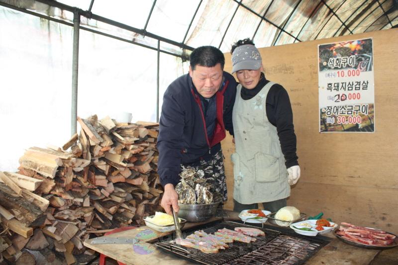 2월까지 겨울철에만 문을 여는 이 집은 간판도 없는 작은 하우스가 가게이다. 밥은 취급하지 않고 구이와 술, 음료만 파는 이 집은 예약을 해야 더 맛있는 구이를 맛볼 수 있다. 장작불이 고기를 굽기에 적당한 상태가 돼야하기 때문. 4년전부터 문을 연 이곳은 맛도 맛이지만 가격도 저렴하다는 소문이 퍼져 목포와 강진, 해남읍에서 주로 찾아온다.
