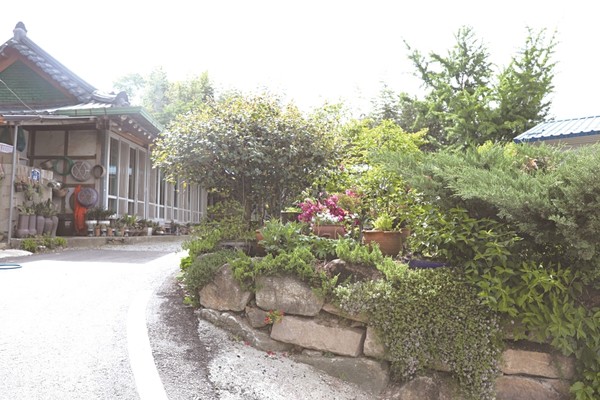 마당에는 작약, 철쭉, 천리향, 동백, 등나무 등 다양한 수종을 자랑한다. 나무들은 장씨가 직접 삽목한 것으로 예쁜 나무도 많이 만들었다.