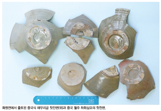 당시 화원도요지에선 최고급 청자인 해무리굽 찻잔이 생산됐다. 찻잔 밑이 해무리처럼 둥글게 생겼다고 해서 붙여진 이름이다. 중국에서는 장식품 옥벽을 닮아 ‘옥벽저(玉璧底)’라 칭했다.
