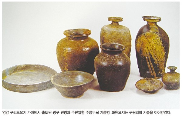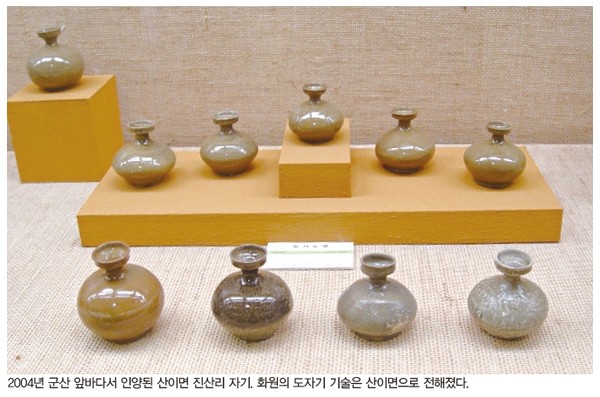 결정적으로 중부지역에서는 주전자, 철화장고가 생산됐으나 이러한 새로운 기종과 철화는 화원면의 기술을 이어받은 산이면 청자요지 2단계에 가서야 등장한다.