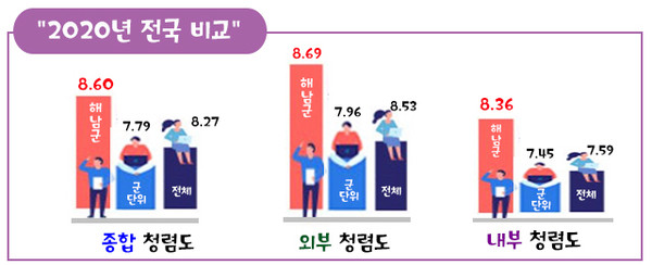 특히 공직자에게 묻는 내부청렴도는 1등급으로 올라섰다.