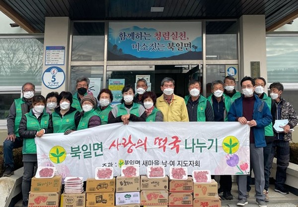 북일면새마을협의회(회장 문종필‧부녀회장 강경심)는 지난 10일 어려운 이웃에게 떡국과 소고기를 전달했다.