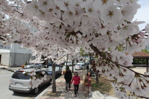 4·11 총선이 끝난 12일 군민광장 앞 벚꽃이 활짝 피어났다. 선거 후유증을 모두 벗어버리고 봄의 생기처럼 다시 시작하자는 의미인 듯 모든 군민들을 화사한 꽃 안으로 불러들인다. 박성기 기자/