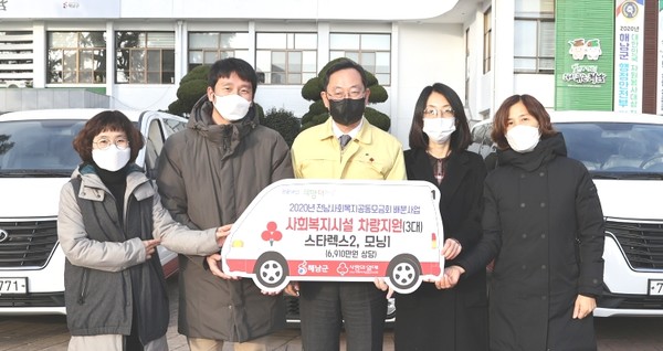 해남군이 전남사회복지공동모금회 기획사업에 선정돼 총 6,900만원 상당의 차량 3대를 사회복지시설 3개소에 지원하게 됐다.