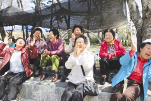 너무나 재미나고 신나게 웃으신다. 마산면민의 날 부부 업고 달리기, 넘어지고 뒤뚱뒤뚱 뛰는 마을대표선수들의 모습에 할머니들 뒤로 넘어질 듯 박장대소다. 일소일소(一笑一少) 일노일로(一怒一老)라 했다. 할머니들이 젊어지는 하루였다. 박성기 기자/