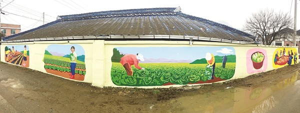 그림으로 보는 배추 이야기. 미술 작가 40여명이 참여한 ‘2020 공공미술 프로젝트’가 마무리에 들어간 가운데 화원 청용마을 골목길이 배추벽화 길로 탄생했다.