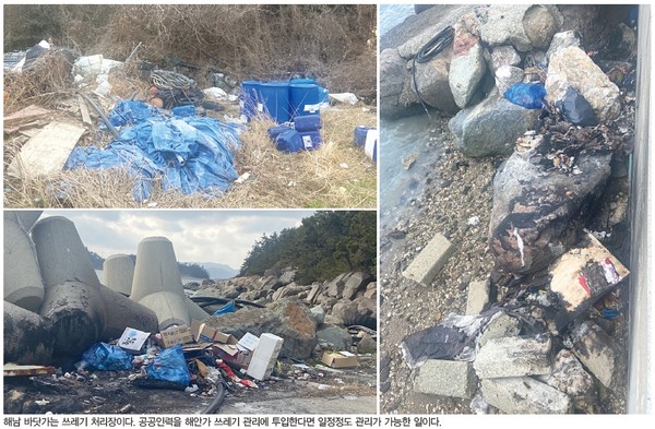쓰레기가 너무 쉽게 버려지고 방치되는 어촌마을의 고착화된 환경은 ‘누구나 쉽게 쓰레기를 버리는 곳’으로 일반인들의 인식마저 퇴보 시키고 있다. ‘바다환경정화운동’과 같은 일시적인 캠페인이나 움직임도 중요하지만 지속적으로 관리가 가능한 인력체계가 하루빨리 만들어져야 한다.