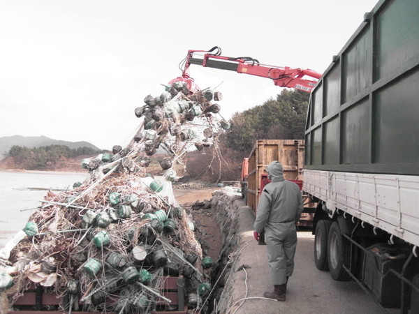 해남군은 조업 활동 중 어업인이 인양한 해양쓰레기를 수매한다.