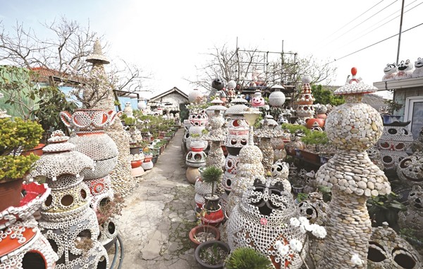 재활용해 만든 수석 조형물이 마당을 가득 채우고 있다. 30년에 걸친 집념이 만들어