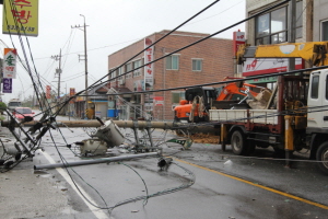 고압간선의 절단과 전신주 피해로 일부 면지역은 아직도 정전상태가 지속되고 있다. 한전측은 24시간 복구작업에 들어갔지만 피해규모가 워낙 커 완전복구까지는 다소 시간이 걸릴 것이라고 밝혔다.