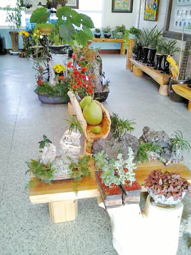 이명현 교장이 직접 만든 목공예 소품들로 현산초등학교 모든 공간이 갤러리자 화원이다.