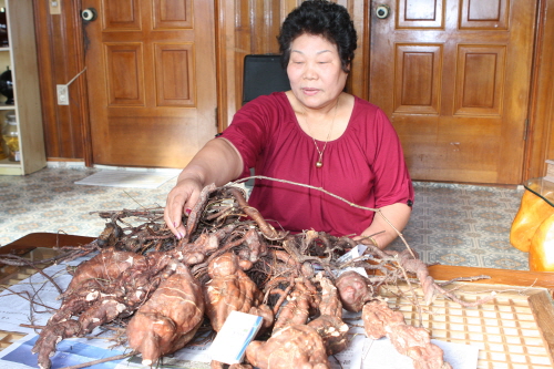 지난달 29일 북평면 차경리 김춘자(60)씨는 완도 신지면 야산으로 칡을 캐러갔다가 커다란 적하수오를 캐내는 행운을 얻었다. 김 씨는 하수오를 캐기 전날 꿈에서 오래전 돌아가신 시부모님으로부터 쌀로 튀긴 뻥튀기과자 한자루를 받는 꿈을 꾸었는데 이렇듯 큰 행운을 얻게 됐다고 기뻐했다. 노명석 기자/