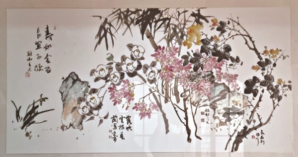 한 폭의 그림에 4명의 낙관이 찍어있는 보기 드문 작품, 아산 조방원과 도촌 신영복, 전정 박항환, 행보 박행보가 공동으로 작업한 작품이 대정회관 식당에 걸려있다. 모두 70년대 이후 남종화의 맥을 이어온 중견작가들이다. 각자 장미와 진달래, 대나무, 괴석, 목련, 난을 그려 넣은 보기 드문 작품이다.