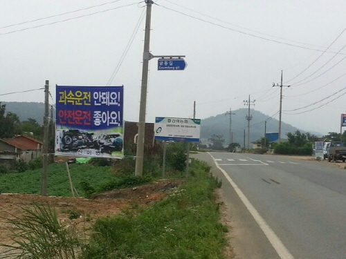 편도 1차선에 상하좌우로 굴곡이 심한 산이면 도로에서 교통사고가 빈번히 발생하자 면사무소와 주민들은 ‘교통사고 없는 산이면 만들기’ 계획을 수립했다. 위험구간 도로개선 및 위험표지판 설치, 교통안전 계도 캠페인 등이 포함된 계획은 10월까지 집중 추진된다.