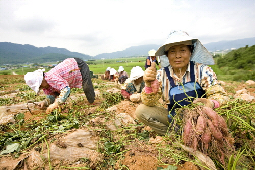햇고구마가 본격 수확되고 있다. 올해 고구마는 강수량이 적어 예년에 비해 수확량이 20%정도 감소될 전망이다. 가격은 지난해 보다 하락한 10kg 1박스당 3만원 선에 출하 되고 있다. 밤고구마 수확이 끝나면 10월말부터 호박고구마와 꿀고구마 등이 차례로 수확된다. 해남군은 고구마 주산단지로 전국 생산량의 12%를 차지하고 있다. (해남읍 백야리 박미경 씨 고구마밭)