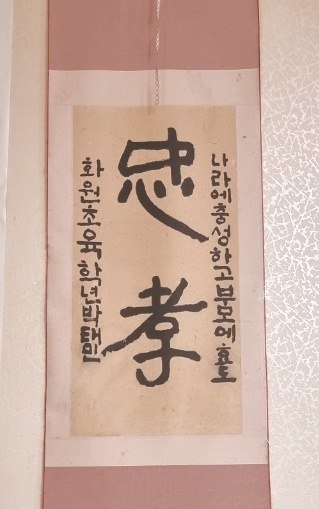 지금은 대학생이 됐지만 자녀들이 초등학교 때 쓴 현대서예작품이다.