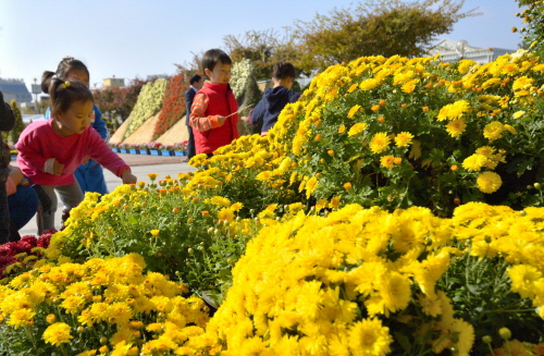 국화가 만개한 해남군민광장은 해남 유치원생들의 가을 나들이 장소가 됐다. 해남군은 오는 17일까지 1만여 점의 국화작품을 전시한다. 군은 유치원생을 대상으로 국화 분갈이와 심기 행사를 마련해 어린이들에게 정서적인 체험도 제공할 계획이다.