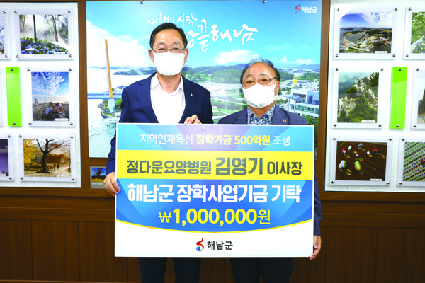 정다운요양병원 김영기 이사장은 “해남군의 장학사업기금 조성에 동참하게 돼 기쁘다. 지역의 우수한 인재 양성에 조금이나마 보탬이 됐으면 한다”고 말했다.