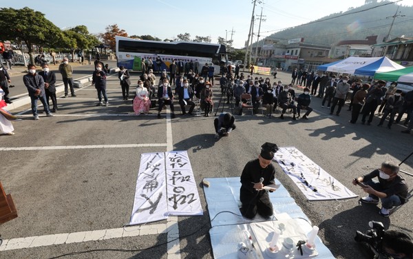 도올 김용옥 선생과 임옥상 화백은 국민 염원을 담은 만장을 썼다. 만장에는 ‘K농촌’, ‘땅 땀 삶’, ‘단군의 신시로’, ‘농어산촌’ 등의 문구를 담았다. 이어 도올 선생이 고유문을 낭독해 농촌의 위기를 알리는 봉화를 점화했다.