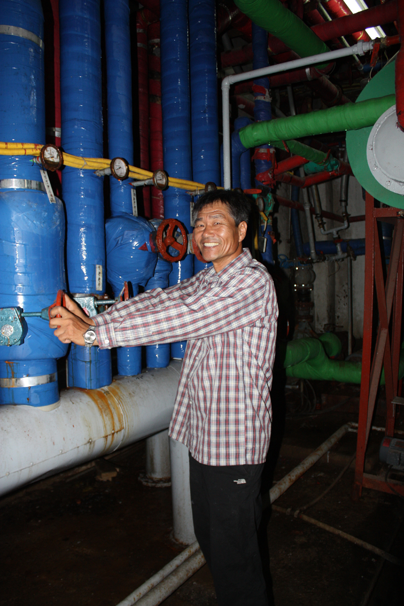 보일러 관리는 천 씨를 포함해 두 사람이 하고 있다. 주간 근무가 끝나고 야간에는 이틀에 한 번씩 교대를 하지만 항상 긴장한 채 비상에 대비해야 한다. 특히 겨울철에는 보일러 관리 때문에 밤에도 2교대로 근무를 해야 한다. 90년대 유류 파동이 났을 때는 값비싼 기름 때문에 화목보일러를 2년여 동안 쓰기도 했단다. 화목보일러는 잠시도 자리를 뜰 수 없었고 지하실까지 화목을 나르는 일 또한 여간 힘든 게 아니었다고 한다.