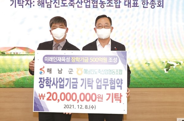 해남진도축산업협동조합(조합장 한종회)과 해남군은 지난 8일 인재양성과 지역발전을 위한 장학사업기금 기탁 업무협약을 체결했다.