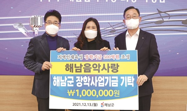 해남음악사랑(회장 박성심)이 길거리 버스킹 수익금 100만원을 해남군 장학사업에 기탁했다.