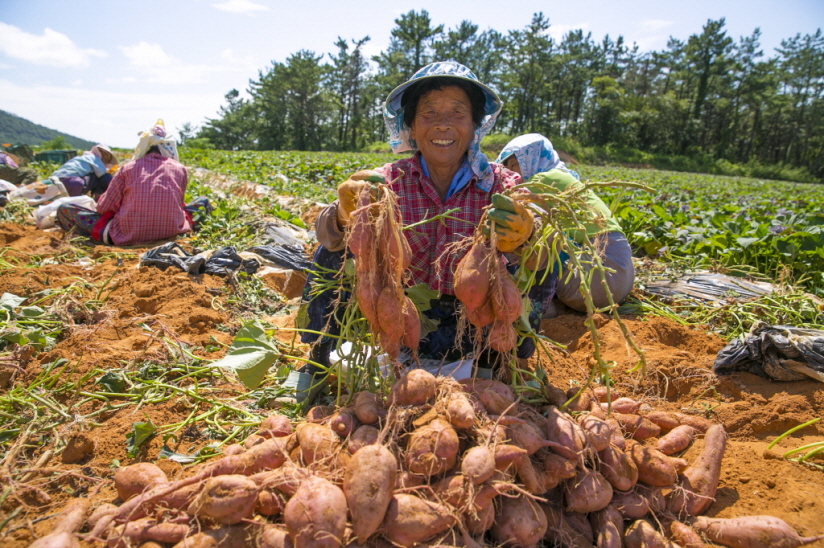 해남 햇고구마가 본격 수확되고 있다. 올해 수확되는 고구마는 지난해보다 당도가 높고 주야간 큰 온도차로 품질이 우수하다. 가격은 10kg 1박스당 3만원~3만5000원선이다.(마산면 연구리 이주영 농가 고구마밭)