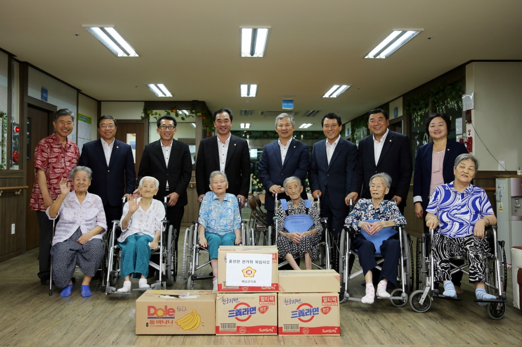 추석, 이웃과 함께 하려는 발길이 복지시설로 이어지고 있다. 한가위 보름달이 모든 이에게 비추듯 모두에게 행복한 추석을 위해 해남군의회 의원들이 지난 3일 요양센터를 방문했다.김유성 기자/