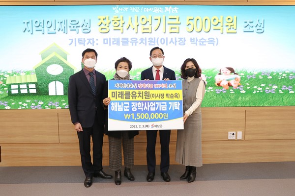 미래클유치원(이사장 박순옥)이 장학사업기금에 150만원을 기탁했다.