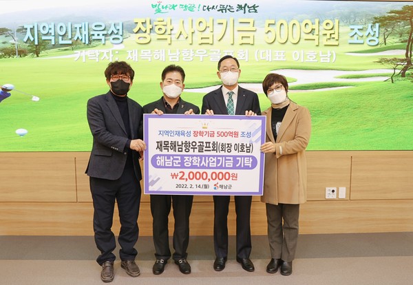 재목해남향우골프회(회장 이호남)가 장학사업기금에 200만원을 기탁했다.