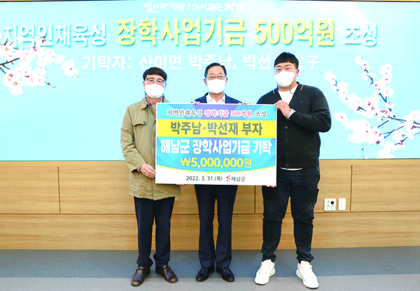산이면 박주남·박선재 부자가 500억원 장학사업기금 조성사업에 500만원을 기탁했다.