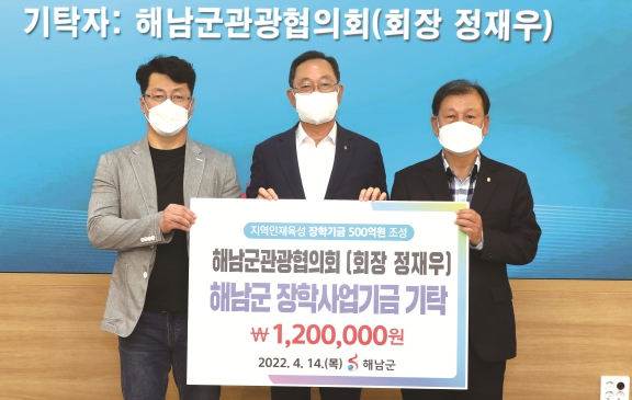 해남군관광협의회(회장 정재우)가 500만원 장학기금 조성에 102만원을 기탁했다.