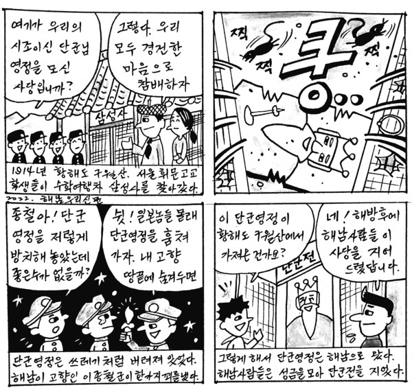해남의 서림공원에는 단군전이 있습니다. 우리의 시조인 단군의 영정을 모신 전각입니다. 해남에 단군전이 세워지게 된 사연을 아는 사람들은 많지 않습니다. 이 전각에는 해남 사람들의 남다른 나라 사랑하는 마음이 깃들어 있습니다.