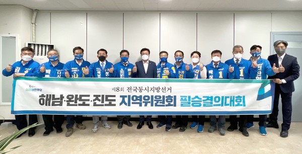 더불어민주당 해남·완도·진도 지역위원회는 제8회 전국동시지방선거에 출마하는 후보자들을 격려하고 압승을 기원하기 위해 필승결의대회를 개최했다.